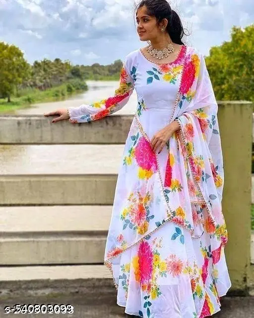 Anarkali kurtis Dupatta Set Ethnic Dupatta Set Traditional Dupatta Set Designer Anarkali Bollywood Fashion Festive Wear Wedding Attire Party Wear ethnic wear flower printed trending kurta dupatta set New Trendy georgette with digital Printed Gown and Dupatta Set For Women
