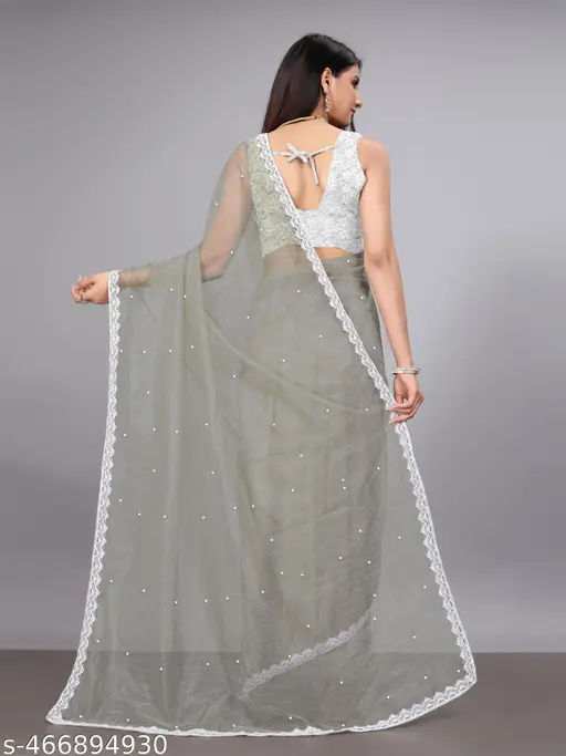 Name : SAREE SHOP- SUPERNET BEADS AND STONE SAREE WITH JACKARD BLOUSE